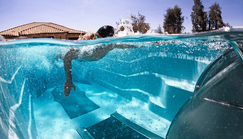 The Endless Pools® Swim Machine utilizes hydraulic power to create a wide, deep current that is broader than your body and deeper than your swimming stroke. Special conditioning grills channel the water to ensure a smooth, turbulence-free experience. You can adjust the pace between 4:04 and 1:14 per 100 metres, with the flow remaining consistent even at the highest speeds.