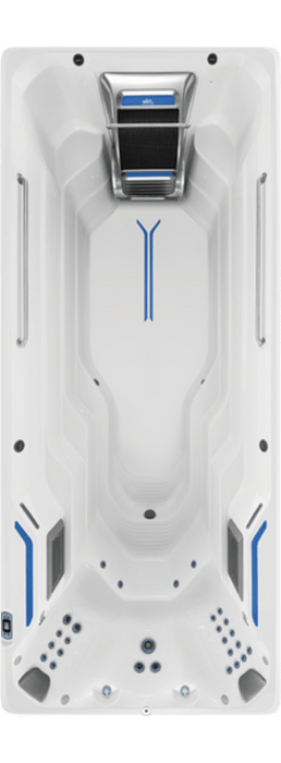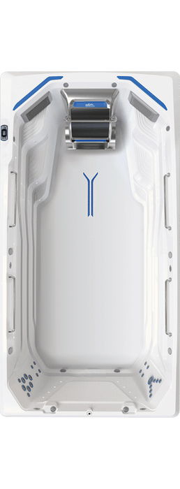 The Endless Pools® Swim Machine utilizes hydraulic power to create a wide, deep current that is broader than your body and deeper than your swimming stroke. Special conditioning grills channel the water to ensure a smooth, turbulence-free experience. You can adjust the pace between 4:04 and 1:14 per 100 metres, with the flow remaining consistent even at the highest speeds.