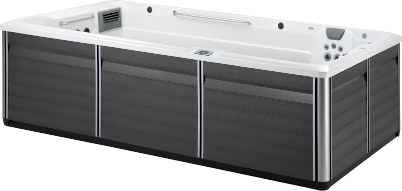 The Endless Pools® Swim Machine utilizes hydraulic power to create a wide, deep current that is broader than your body and deeper than your swimming stroke. Special conditioning grills channel the water to ensure a smooth, turbulence-free experience. You can adjust the pace between 4:04 and 1:14 per 100 metres, with the flow remaining consistent even at the highest speeds.