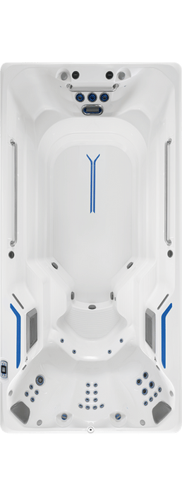 The Endless Pools® Swim Machine utilizes hydraulic power to create a wide, deep current that is broader than your body and deeper than your swimming stroke. Special conditioning grills channel the water to ensure a smooth, turbulence-free experience. You can adjust the pace between 4:04 and 1:14 per 100 metres, with the flow remaining consistent even at the highest speeds.