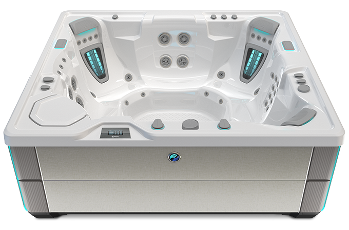 The FreshWater Salt System is a significant breakthrough in hot tub water care. This unique, patent-pending technology utilises a titanium cartridge to generate chlorine from salt, which keeps the water clean, crystal clear, and gentle on your skin. By using fewer bottled chemicals and requiring less day-to-day maintenance, the system simplifies hot tub ownership while extending the life of your water for up to a year. This system is available on all Highlife® hot tubs.