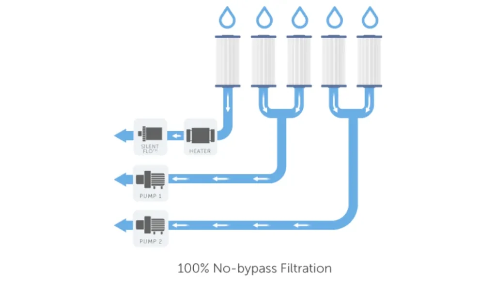 All the water in a Highlife® Collection spa is filtered with no bypass, meaning these hot tubs filter 100% of the water 100% of the time. No water returns to the hot tub without being cleaned in the exclusive high-flow Tri-X™ filters. Our Tri-X™ filters utilise exclusive three-dimensional technology to filter significantly more water than standard paper filters.