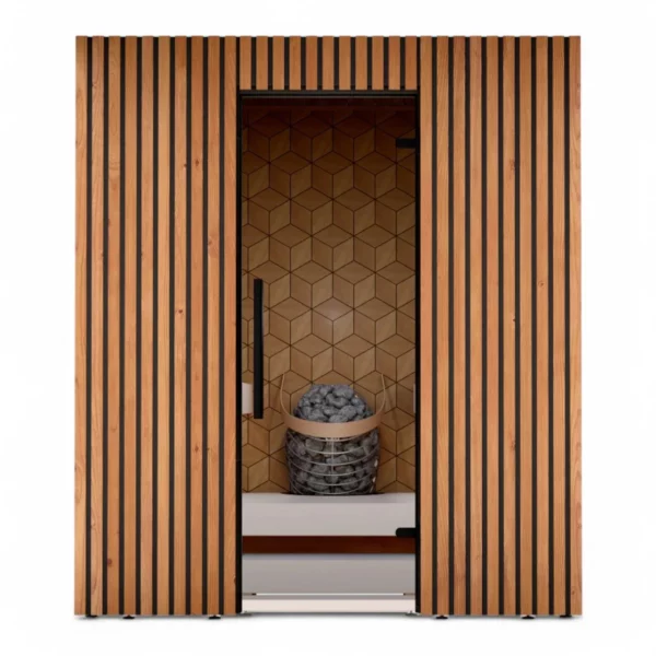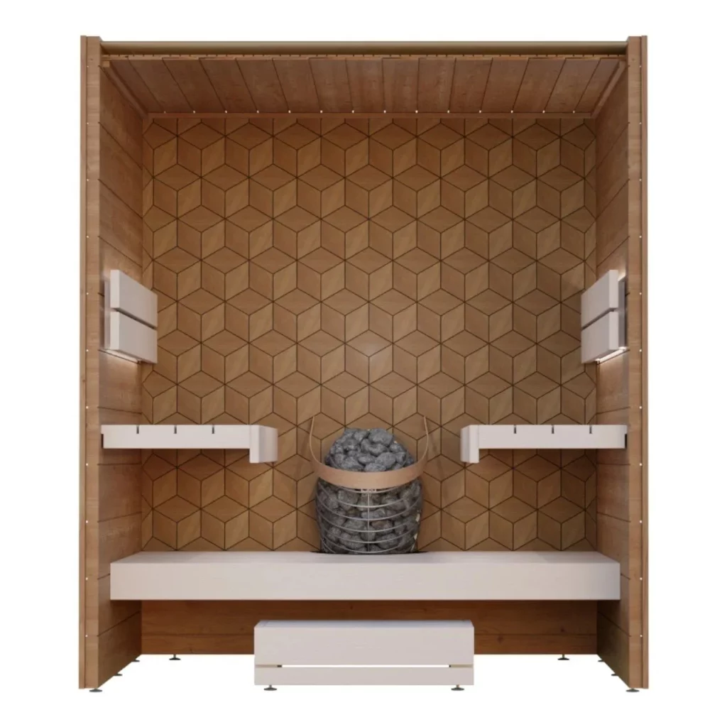 Decorative hexagon panel on the back wall made from Thermo Abachi wood. If not chosen, back wall will be standard thermowood the same as the side walls.