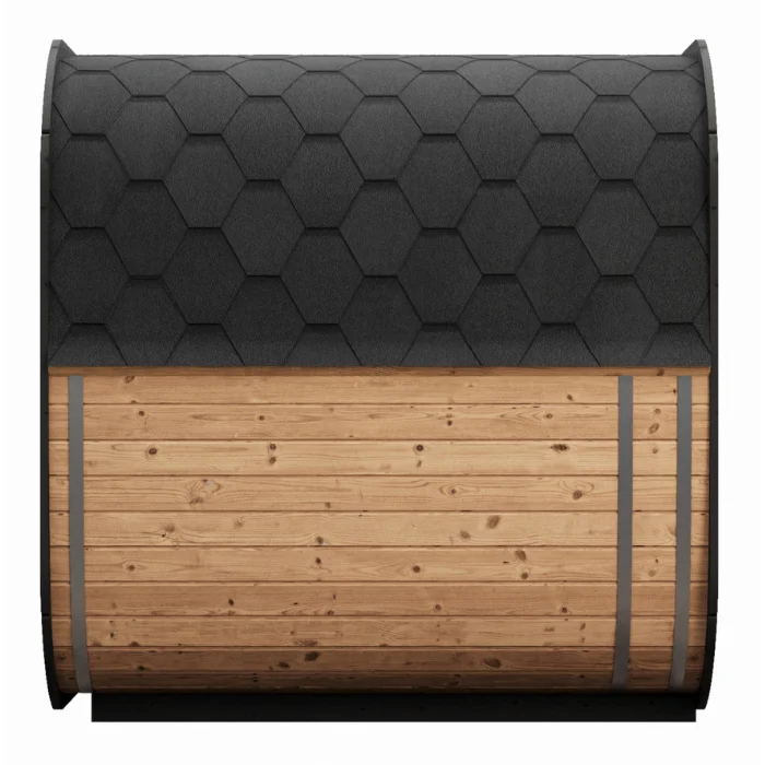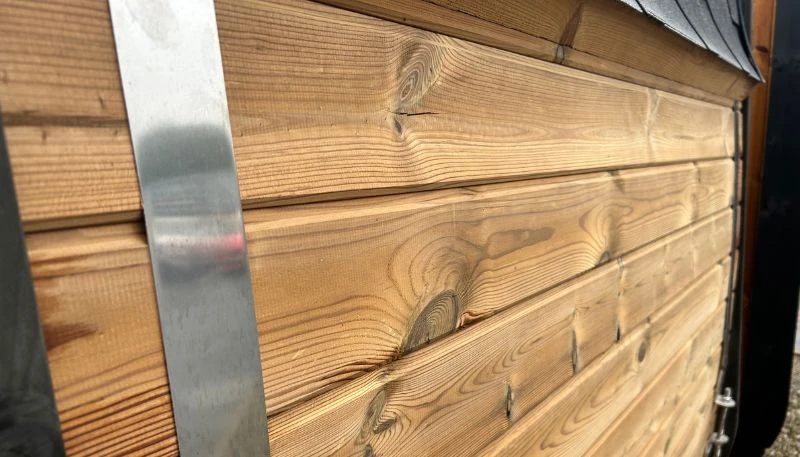 To ensure the cabin remains structurally sound, it is secured with two adjustable stainless steel bands. These provide vital reinforcement, keeping the timber panels in position while allowing the wood to naturally expand and contract within the changing climate of Northern Ireland. Being resistant to corrosion, the stainless steel ensures lasting durability and a polished finish that suits the contemporary design.